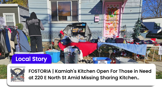 FOSTORIA, OH – In a town where need doesn’t wait for bureaucracy, one local woman has taken matters into her own hands. Kamiah Young, a longtime Fostoria resident, has transformed her front lawn and sidewalk into Kamiah’s Kitchen – a grassroots, no-questions-asked giveaway spot offering canned goods, non-perishable food, household items, clothing, sub sandwiches, soups, egg sandwiches, and other essentials completely free to anyone who needs them.