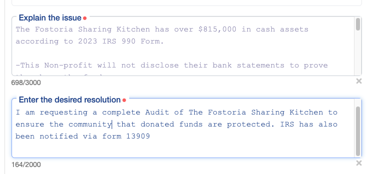 While Kamiah’s Kitchen fills an urgent gap with visible daily impact, the town’s official nonprofit food assistance organization – The Sharing Kitchen of Fostoria (EIN: 34-1661501) – has faced growing community scrutiny for its lack of activity despite holding substantial financial resources.