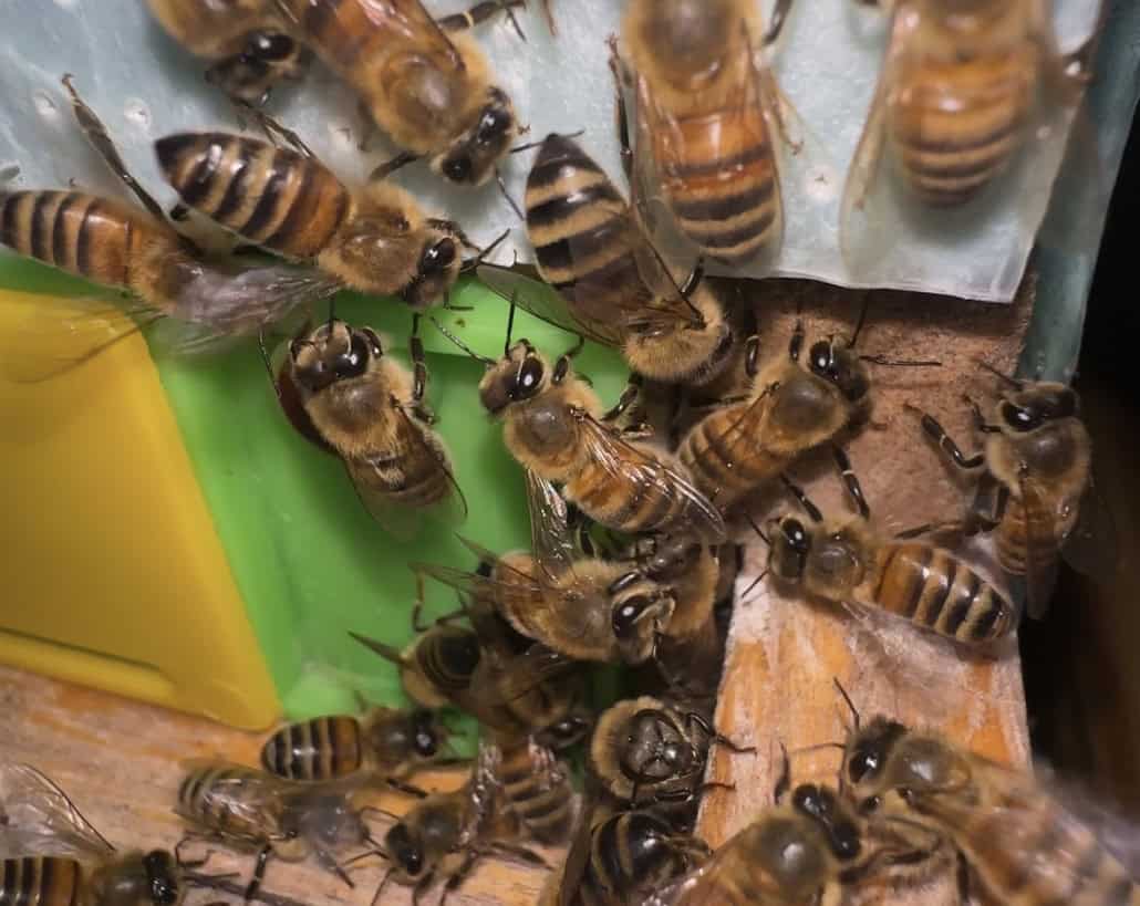 During the winter months honeybees form a tightly packed cluster inside their hive. They work together generating heat to keep the queen alive and colony in order.