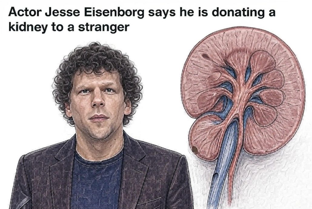 Eisenberg’s announcement has sparked admiration and discussions about organ donation, with Today host Craig Melvin calling it “amazing” and a “big jump” from blood donation. As he prepares for the procedure, the actor expressed genuine excitement: “I’m actually donating my kidney in six weeks. I really am.” His story serves as a powerful reminder of the impact one person can make, potentially encouraging others to consider similar acts of generosity.